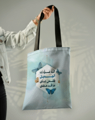 شنطة توتي مطبوعة من الجهتين بجودة عالية، مع سوستة للإغلاق، مصنوعة بالكامل من البوليستر. صُممت لتحمل احتياجاتك اليومية بأناقة، وتُظهر شخصيتك من خلال التصميم العربي الأصيل.