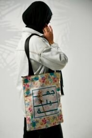 شنطة توتي مطبوعة من الجهتين بجودة عالية، مع سوستة للإغلاق، مصنوعة بالكامل من البوليستر. صُممت لتحمل احتياجاتك اليومية بأناقة، وتُظهر شخصيتك من خلال التصميم العربي الأصيل.