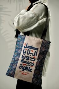 شنطة توتي مطبوعة من الجهتين بجودة عالية، مع سوستة للإغلاق، مصنوعة بالكامل من البوليستر. صُممت لتحمل احتياجاتك اليومية بأناقة، وتُظهر شخصيتك من خلال التصميم العربي الأصيل.