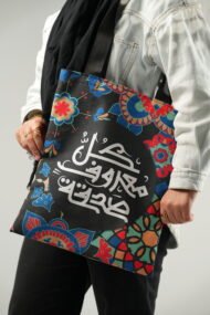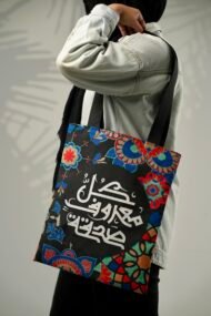 شنطة توتي مطبوعة من الجهتين بجودة عالية، مع سوستة للإغلاق، مصنوعة بالكامل من البوليستر. صُممت لتحمل احتياجاتك اليومية بأناقة، وتُظهر شخصيتك من خلال التصميم العربي الأصيل.